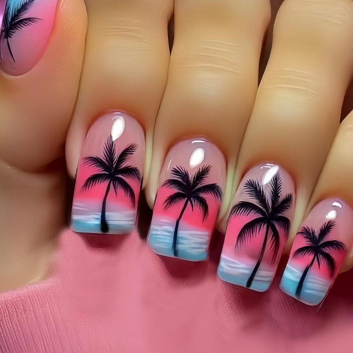 優寶購物《ubao.Tw》特貨品商城,黑貓宅配,取貨付款,跨境熱銷24片藍色漸變法式假指甲熱帶棕櫚樹高級亮面穿戴甲片nail【樂畈美甲飾品】 | Yahoo拍賣