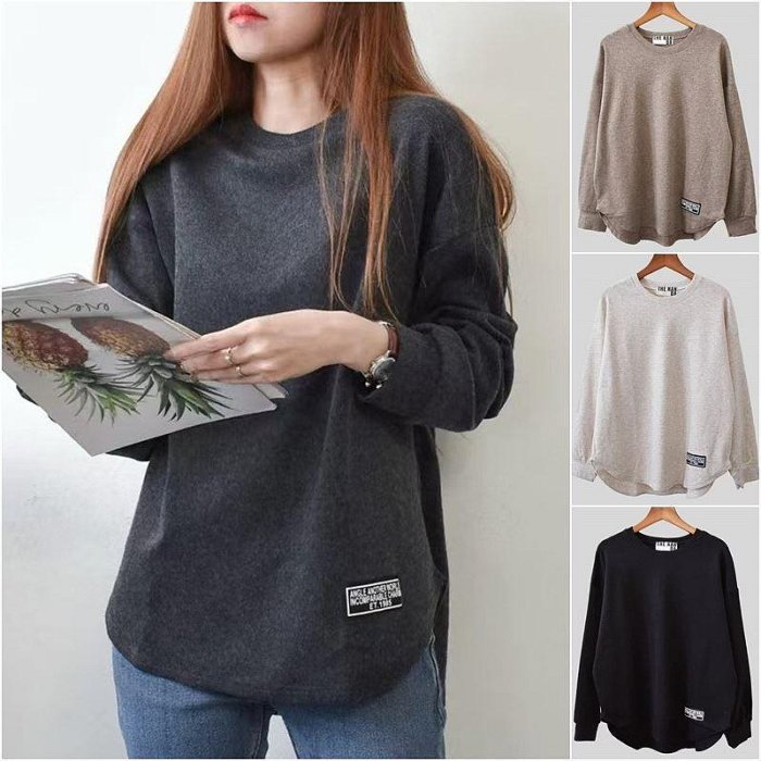 優寶購物《ubao.Tw》特貨品商城,黑貓宅配,取貨付款,✿ 吉米花 ✿ M-0965 磨毛棉貼標長袖T恤 ( 4色 F ) 均碼 | Yahoo拍賣