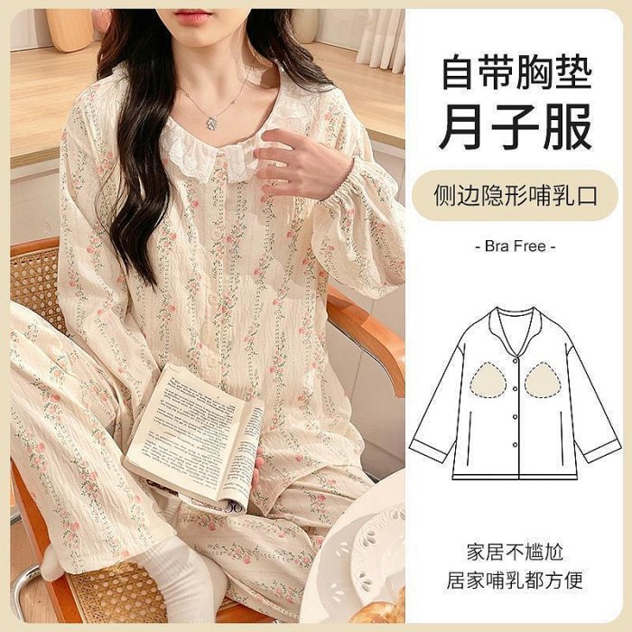 優寶購物《ubao.Tw》特貨品商城,黑貓宅配,取貨付款,帶胸墊月子服產后夏季薄款寬松大碼睡衣春秋云朵棉家居服 | Yahoo拍賣