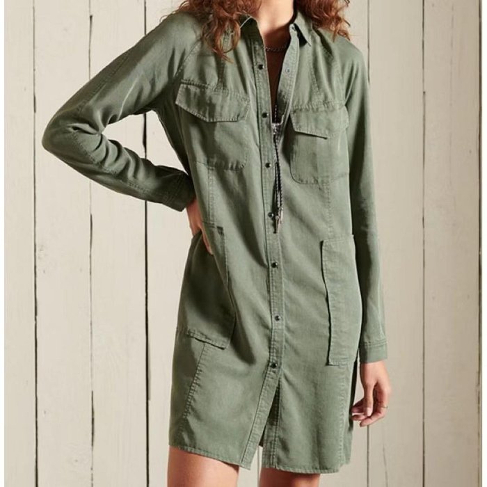 優寶購物《ubao.Tw》特貨品商城,黑貓宅配,取貨付款,Miolla英國品牌SuperDry 軍綠/灰黑珍珠扣棉質口袋長襯衫/洋裝 | Yahoo拍賣