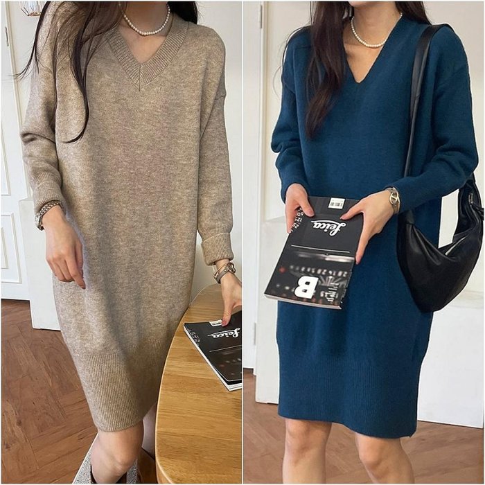 優寶購物《ubao.Tw》特貨品商城,黑貓宅配,取貨付款,Bellee 正韓 顯瘦順深V領長袖針織洋裝 (3色) 【1112-2】 | Yahoo拍賣