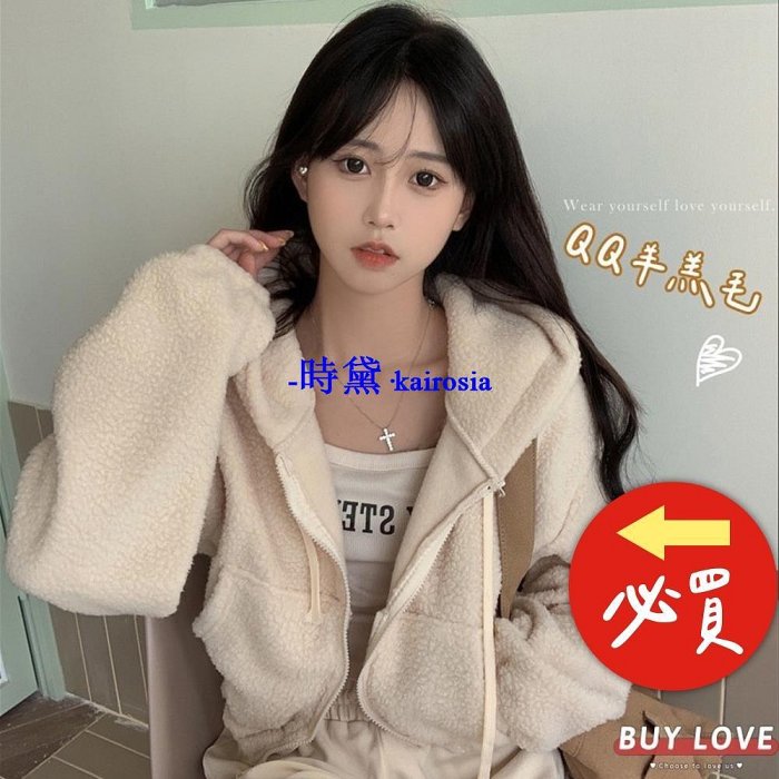優寶購物《ubao.Tw》特貨品商城,黑貓宅配,取貨付款,韓系 短版羊羔毛絨連帽衛衣小個子 長袖 加厚短版外套 毛毛外套【FB6625】-時黛·kairosia | Yahoo拍賣