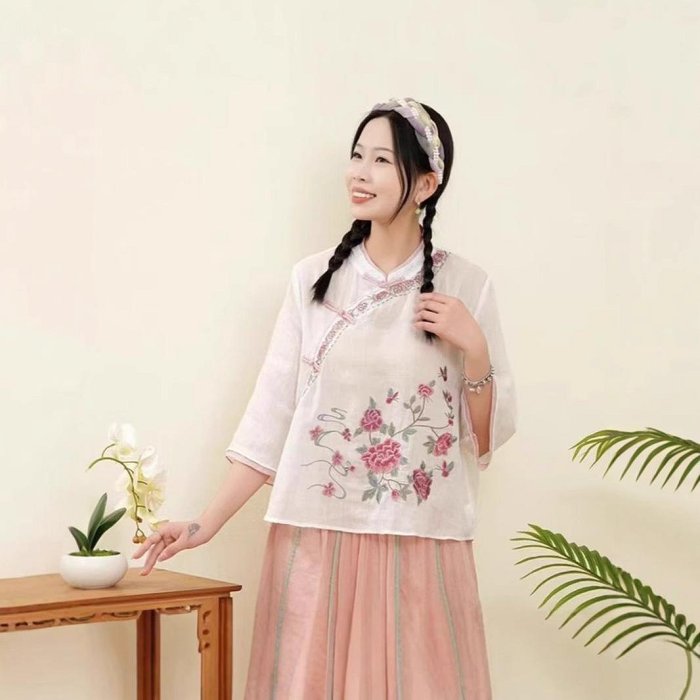 優寶購物《ubao.Tw》特貨品商城,黑貓宅配,取貨付款,洋裝 中式 復古 女棉麻中式重工刺繡斜襟開衫女夏季國風盤扣上衣文藝復古七分袖襯衫 | Yahoo拍賣