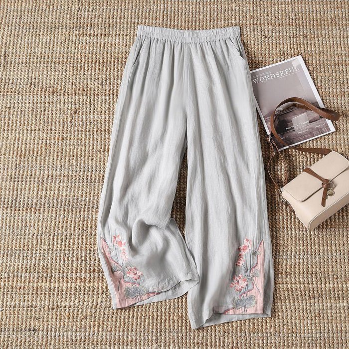 優寶購物《ubao.Tw》特貨品商城,黑貓宅配,取貨付款,洋裝 中式 復古 女女褲中式休閑闊腿褲夏國風復古拼色刺繡透氣高腰顯瘦休閑褲九分褲 | Yahoo拍賣