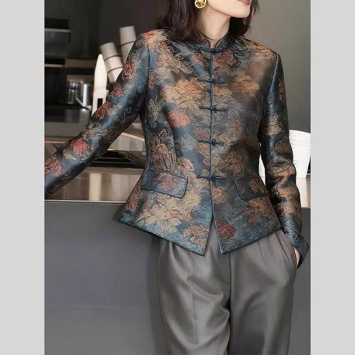 優寶購物《ubao.Tw》特貨品商城,黑貓宅配,取貨付款,洋裝 中式 復古 女2025秋冬新中式女裝禪意國風宋錦提花外套女洋氣唐裝復古盤扣上衣 | Yahoo拍賣