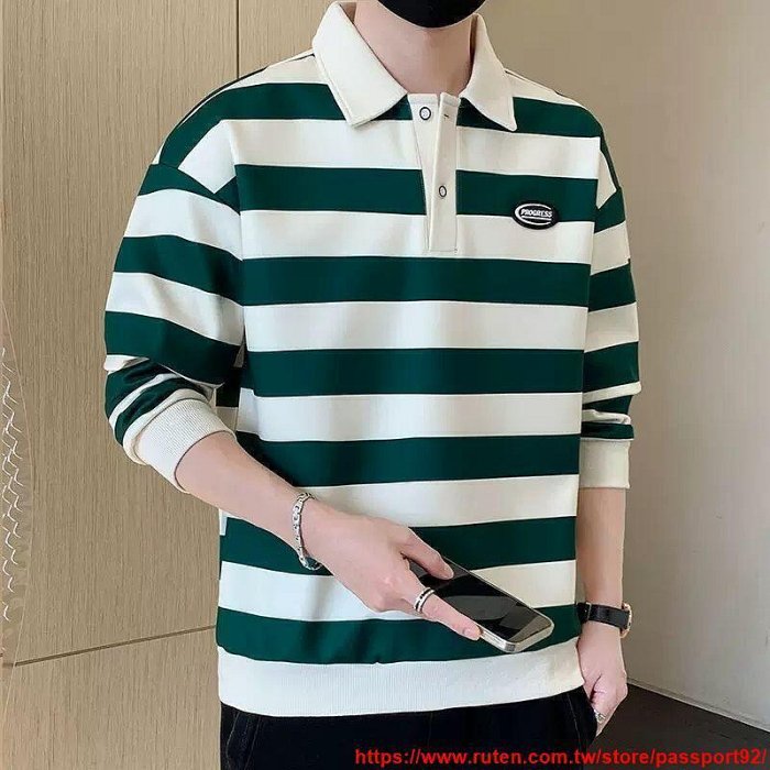 優寶購物《ubao.Tw》特貨品商城,黑貓宅配,取貨付款,條紋POLO衫衛衣男士春秋季ins翻領長袖t恤潮流體恤打底衫上衣 | Yahoo拍賣