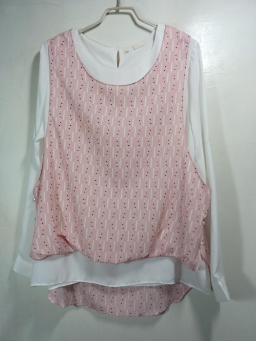 優寶購物《ubao.Tw》特貨品商城,黑貓宅配,取貨付款,※蜜彩BABY熊※專櫃B.CLUB白色雪紡粉色珠珠背心假兩件式長袖上衣 | Yahoo拍賣
