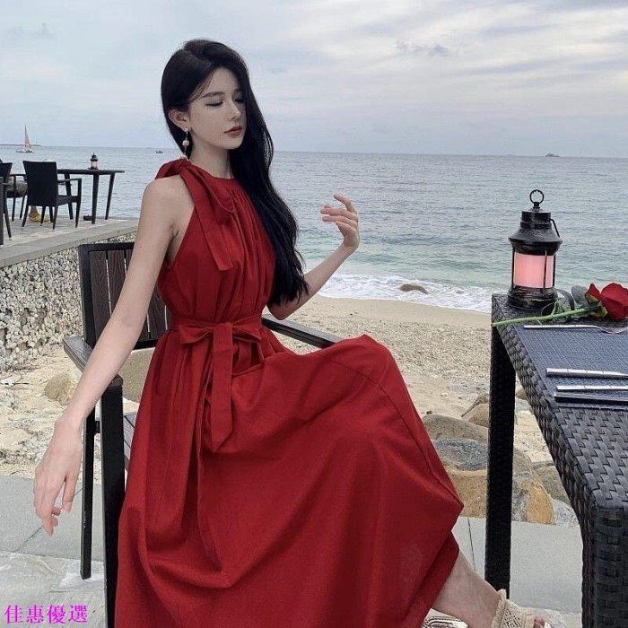 優寶購物《ubao.Tw》特貨品商城,黑貓宅配,取貨付款,度假風掛脖紅色連衣裙女夏海邊度假氛圍感長裙赫本風洋裝 洋裝夏天 辣妹大尺碼 甜妹穿搭 夏季連身裙 洋裝 氣質-佳惠優選 | Yahoo拍賣
