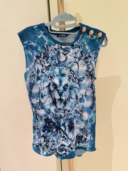 優寶購物《ubao.Tw》特貨品商城,黑貓宅配,取貨付款,嚴選巴爾曼Balmain女款36碼藍色獅子頭無袖上衣,低調奢華推薦!薄棉質材,三肩扣設計,適合收藏與穿搭。 巴爾曼 Balmain 獅子頭 上衣 36 | Yahoo拍賣