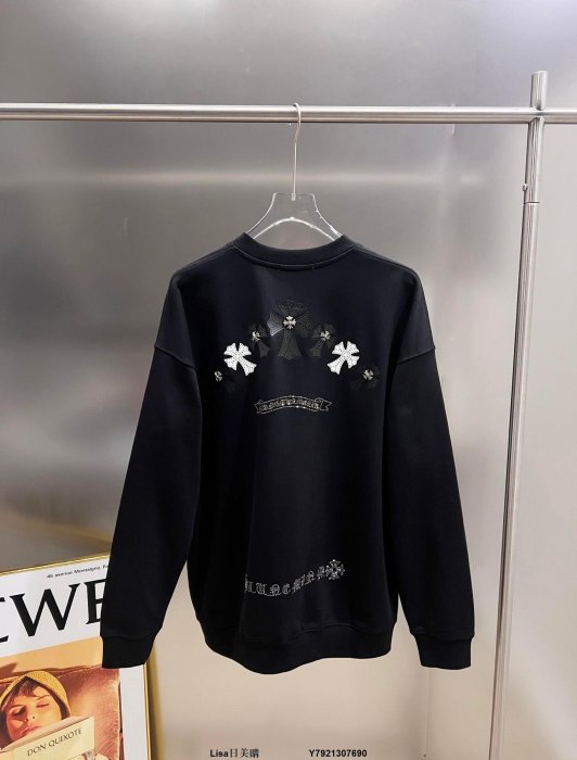優寶購物《ubao.Tw》特貨品商城,黑貓宅配,取貨付款,Lisa日美購2025秋冬新款CH克羅圓領長袖衛衣十字架貼皮金屬馬蹄梵文澳鑽設計男女同款寬松S/M/L/XL/XXL黑白色 | Yahoo拍賣