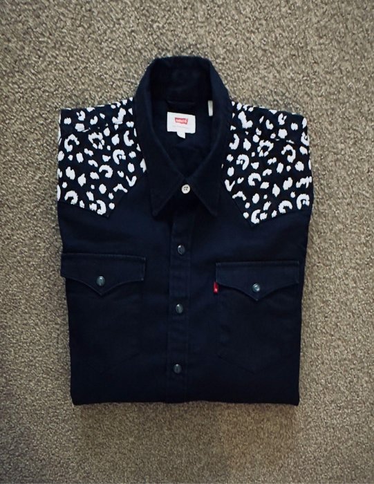 優寶購物《ubao.Tw》特貨品商城,黑貓宅配,取貨付款,Levi’s 全新深灰黑色 豹紋西部牛仔車縫丹寧襯衫外套 | Yahoo拍賣