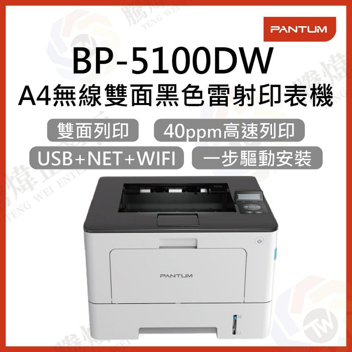 優寶購物《ubao.Tw》特貨品商城,黑貓宅配,取貨付款,【騰煒企業行】奔圖 BP-5100DW 40頁 SFP A4無線雙面黑色雷射印表機 | Yahoo拍賣