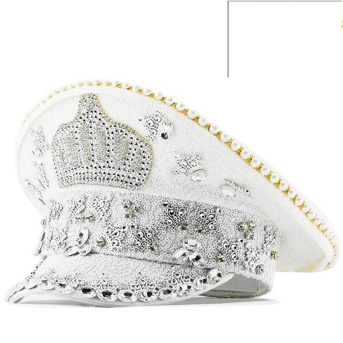 優寶購物《ubao.Tw》特貨品商城,黑貓宅配,取貨付款,銀水鑽節日演出燙鑽百搭鑲鑽白海軍帽派對狂歡生日婚禮大蓋帽 | Yahoo拍賣