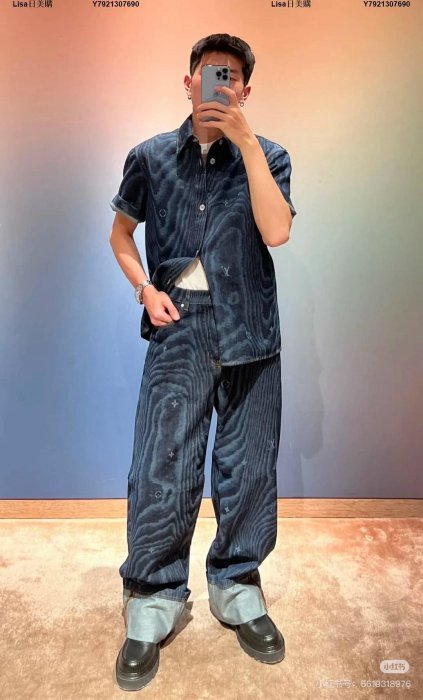 優寶購物《ubao.Tw》特貨品商城,黑貓宅配,取貨付款,Lisa日美購LV早秋新品水波紋牛仔褲 藍色 Damier標籤珠光鉚釘 舒適翻邊設計 30 32 34 36 | Yahoo拍賣