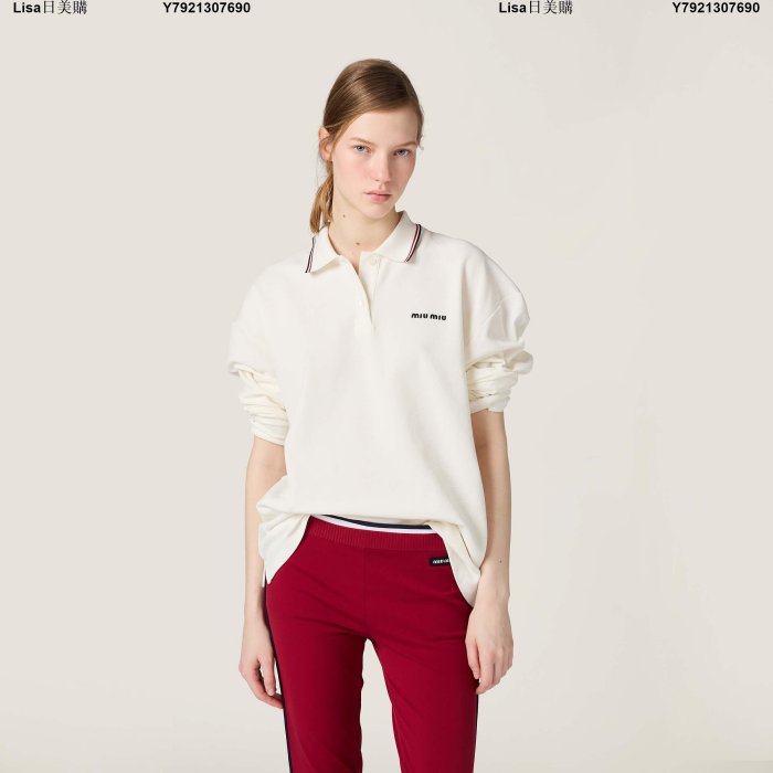 優寶購物《ubao.Tw》特貨品商城,黑貓宅配,取貨付款,Lisa日美購MiuMiu 50支純棉刺繡Polo衫 長袖Oversize版型 前襟鈕扣 立體刺繡徽標 螺紋翻領 | Yahoo拍賣