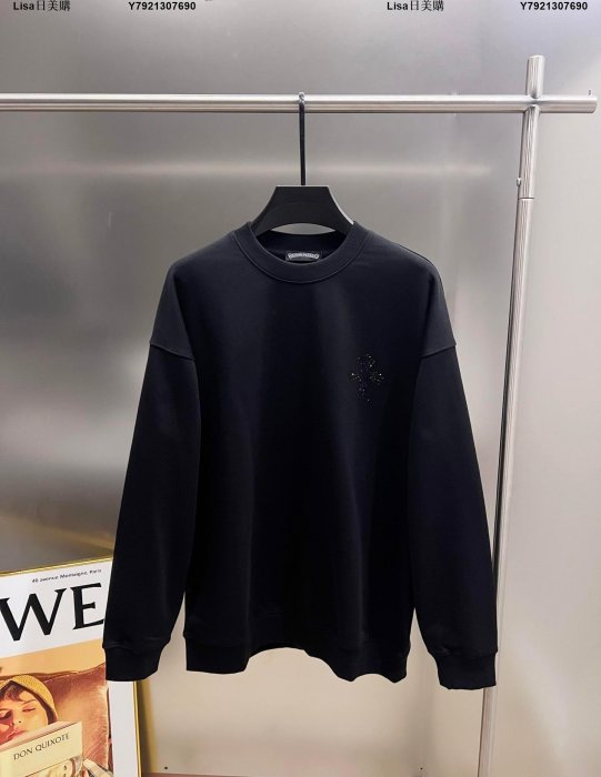 優寶購物《ubao.Tw》特貨品商城,黑貓宅配,取貨付款,Lisa日美購2025秋冬新款CH克羅圓領長袖衛衣十字架發泡金屬馬蹄梵文設計男女同款鬆身五碼S-XXL黑白兩色 | Yahoo拍賣