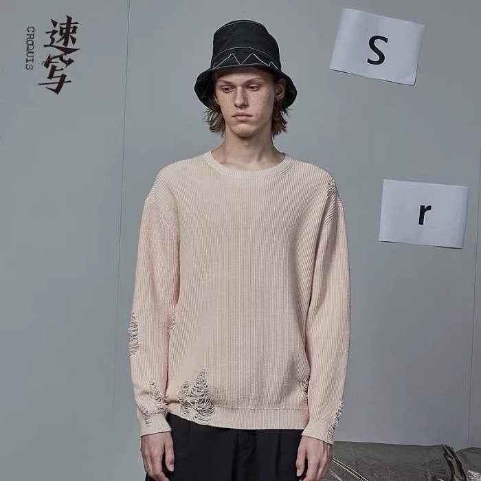 優寶購物《ubao.Tw》特貨品商城,黑貓宅配,取貨付款,嚴選韓系風潮全棉寬鬆圓領針織衫,百搭破洞設計適合各種造型 白色 黑色 紅色 | Yahoo拍賣