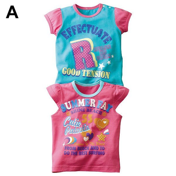 優寶購物《ubao.Tw》特貨品商城,黑貓宅配,取貨付款,全新現貨日本進口nissen女童可愛美式休閒風印花短袖上衣二件組---80.100公分 | Yahoo拍賣