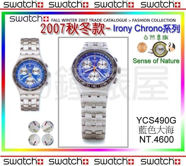 優寶購物《ubao.Tw》特貨品商城,黑貓宅配,取貨付款,【99鐘錶屋】Swatch2007秋冬《自然意識》:Irony Chrono系列(YCS490G藍色大海)免運+紀念品 | Yahoo拍賣