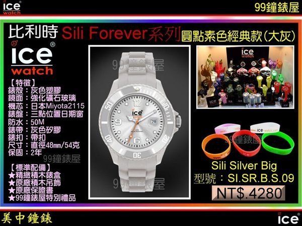 優寶購物《ubao.Tw》特貨品商城,黑貓宅配,取貨付款,【99鐘錶屋*美中鐘錶】比利時ICE-WATCH:Sili Forever (SI.SR.B.S.09)圓點素色經典款 / 灰(大) | Yahoo拍賣
