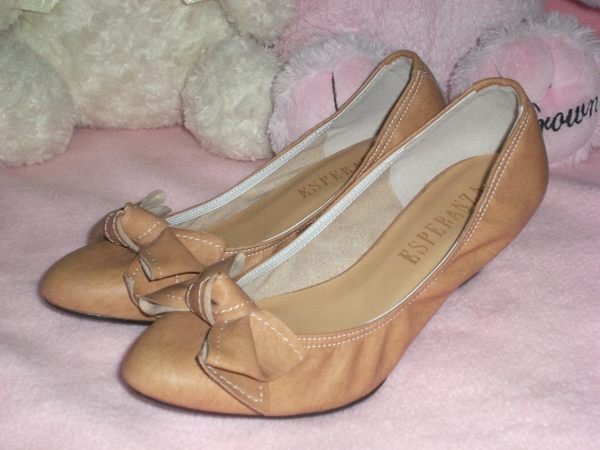 優寶購物《ubao.Tw》特貨品商城,黑貓宅配,取貨付款,☆甜甜妞妞小舖 ☆ 專櫃真品 ESPERANZA 日本駝色蝴蝶結 楔型/厚底包鞋 ---23號 | Yahoo拍賣