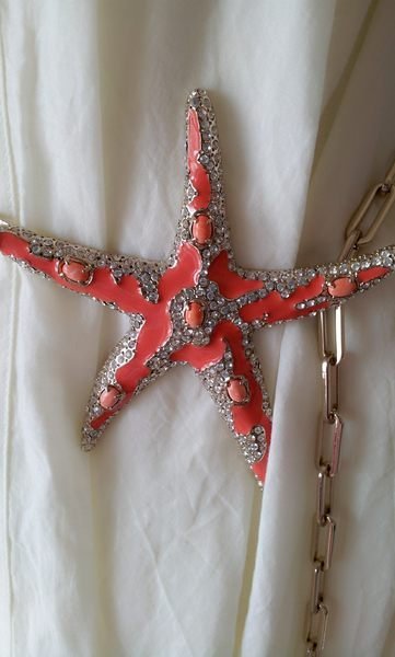 優寶購物《ubao.Tw》特貨品商城,黑貓宅配,取貨付款,VALENTINO GARAVANI 珊瑚紅施華洛世奇水鑽海星金鍊腰帶 | Yahoo拍賣