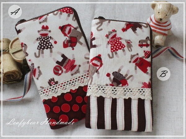 優寶購物《ubao.Tw》特貨品商城,黑貓宅配,取貨付款,✿葉手作✿快樂幼猴園蕾絲篇(點點˙條紋)L型拉鍊手機袋iphone HTC Samsung Sony 皆可訂做~ | Yahoo拍賣