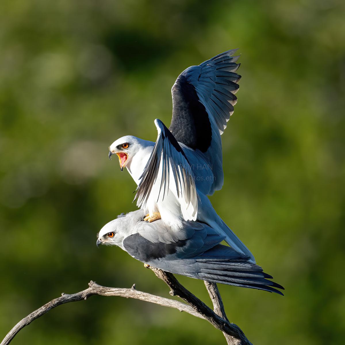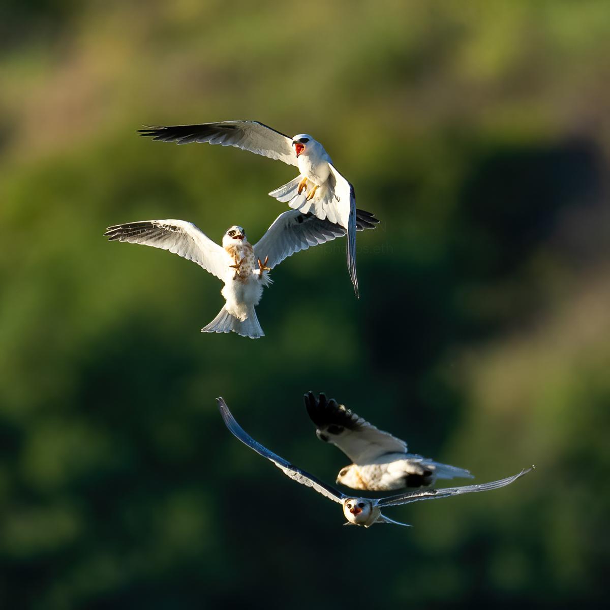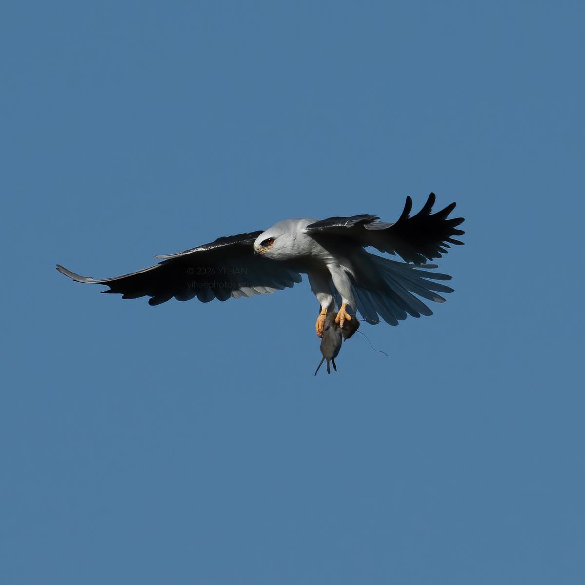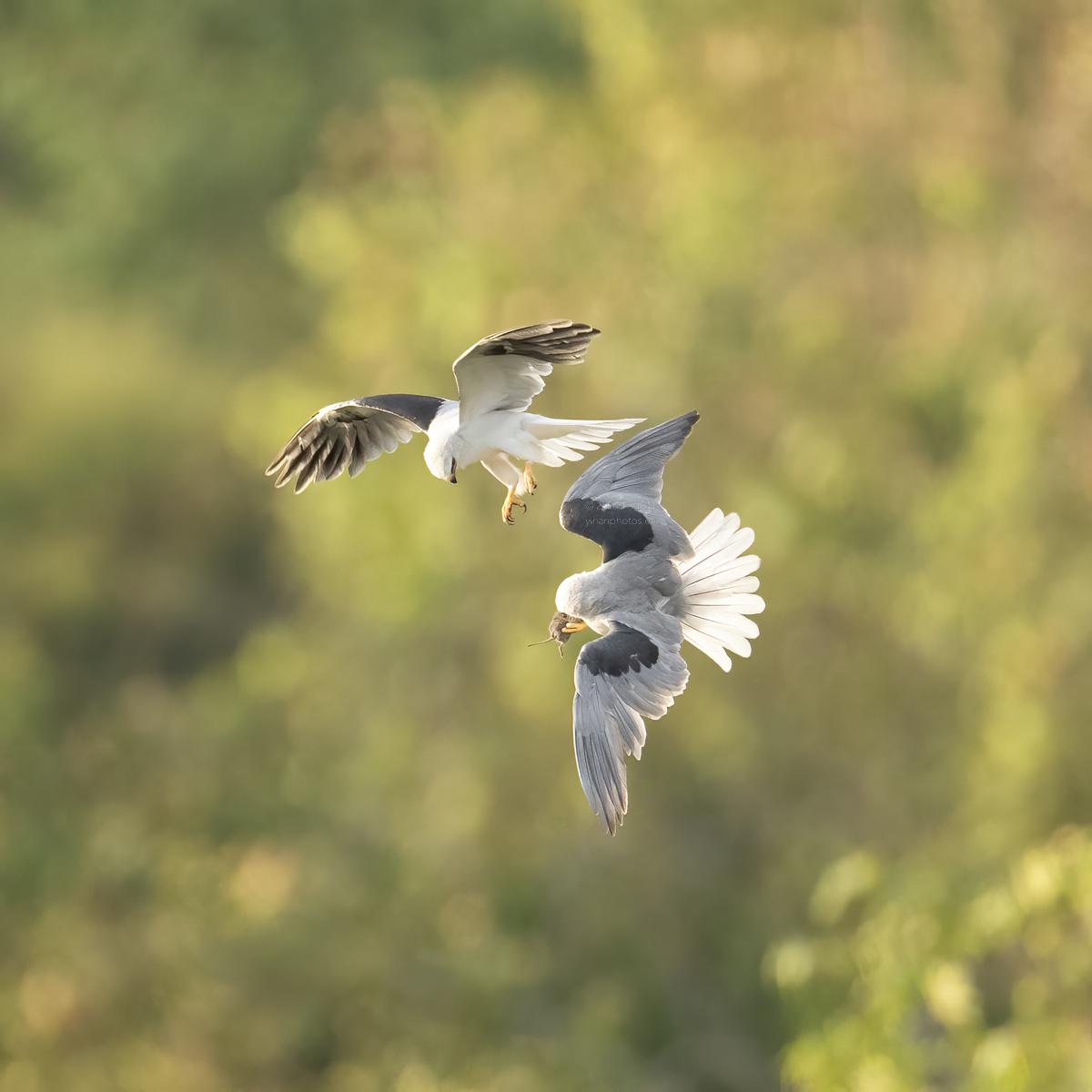 白尾鸢的公鸟繁殖季给母鸟送食物,育雏早期都是空中交接,食物通常是鼠鼠类。