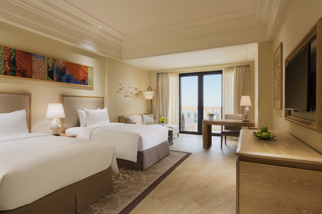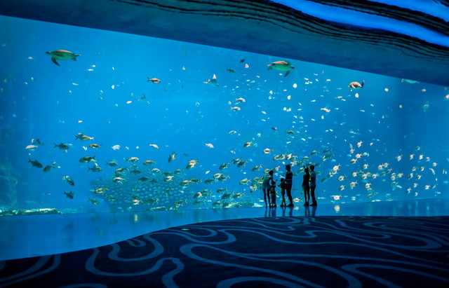 (二)住在琴:隆集不惜成本,找杜拜「特堤斯」WATG 建,打造同於「人海洋和共存」理念下1,888房的「琴店」,不只在Lobby有天而降6巨型海豚、每房都不小於13.6坪(45平方米),同都有各自立的台可抱青山或碧海天等美景…