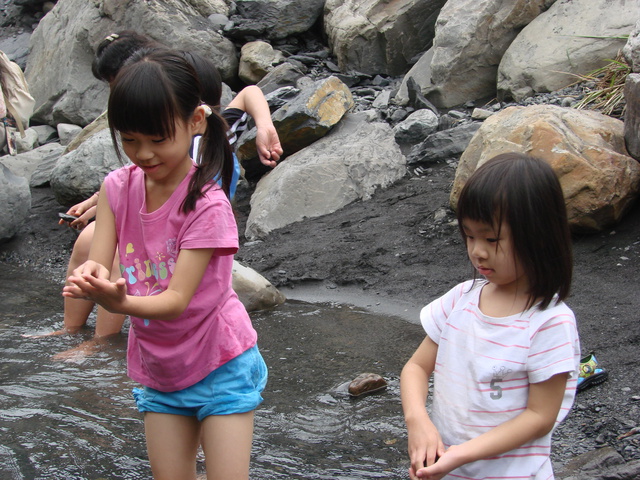 母子坐在一起,泡泡爽溪水,多棒的面!