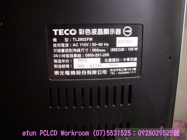 元(TECO)26型LCD TV ,有音影像!(12,623)
