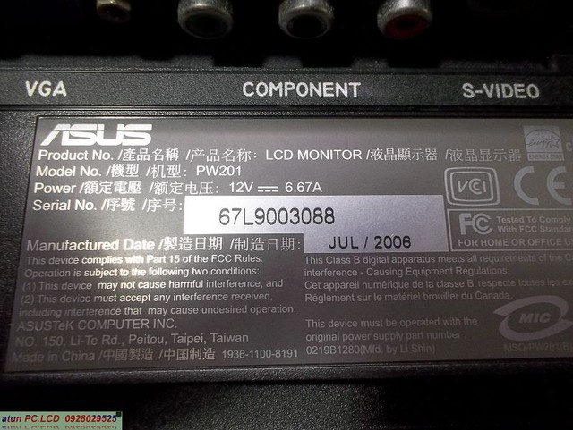 ASUS()型:PA238,後,右上半示昏暗,修。