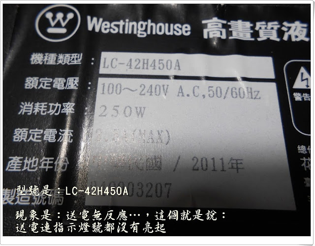 SHARP(夏普)型: LC-32LE345T,送後、指示不亮,法,修。