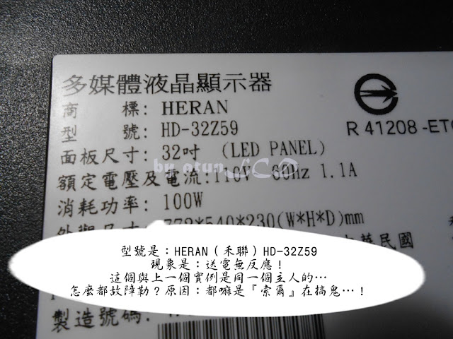 SHARP(夏普)型: LC-32LE345T,送後、指示不亮,法,修。