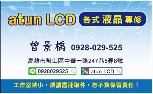 迎收看本日液晶幕修分享,我是…『Kao atunLCD(高雄.阿唐液晶)』曾仔~