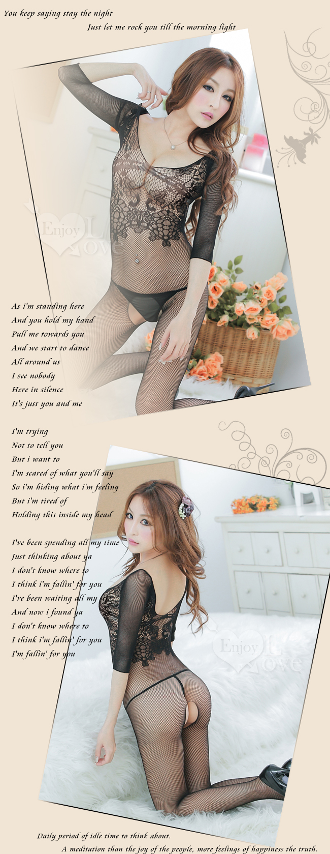 【最跳蛋推】 迷狂潮!性感花小眼七分袖身衣(黑)40020