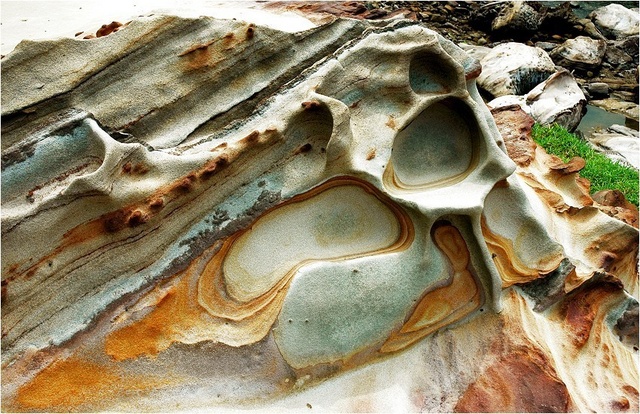 砂岩中的理含的物,受到多多雨的侵,容易生氧化作用,形成氧化的花;氧化更造成岩的硬不一,形成不同的侵的速率,通常岩的部份比容易崩掉落,理面硬,不只在岩石上生凹凸不平的次,更使岩石形成深不同的色彩,也正是被「霜淇淋岩」的 南雅奇石 由。- 月 / 北角的地人文旅行