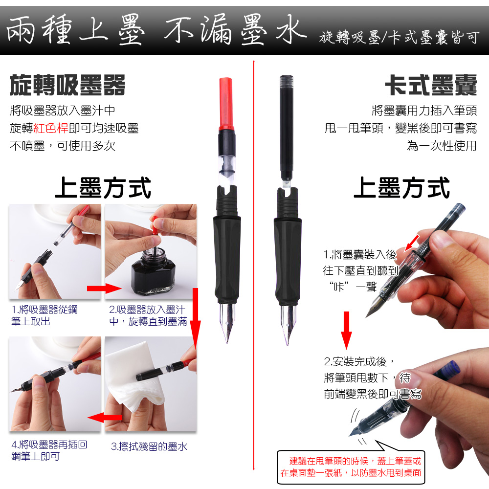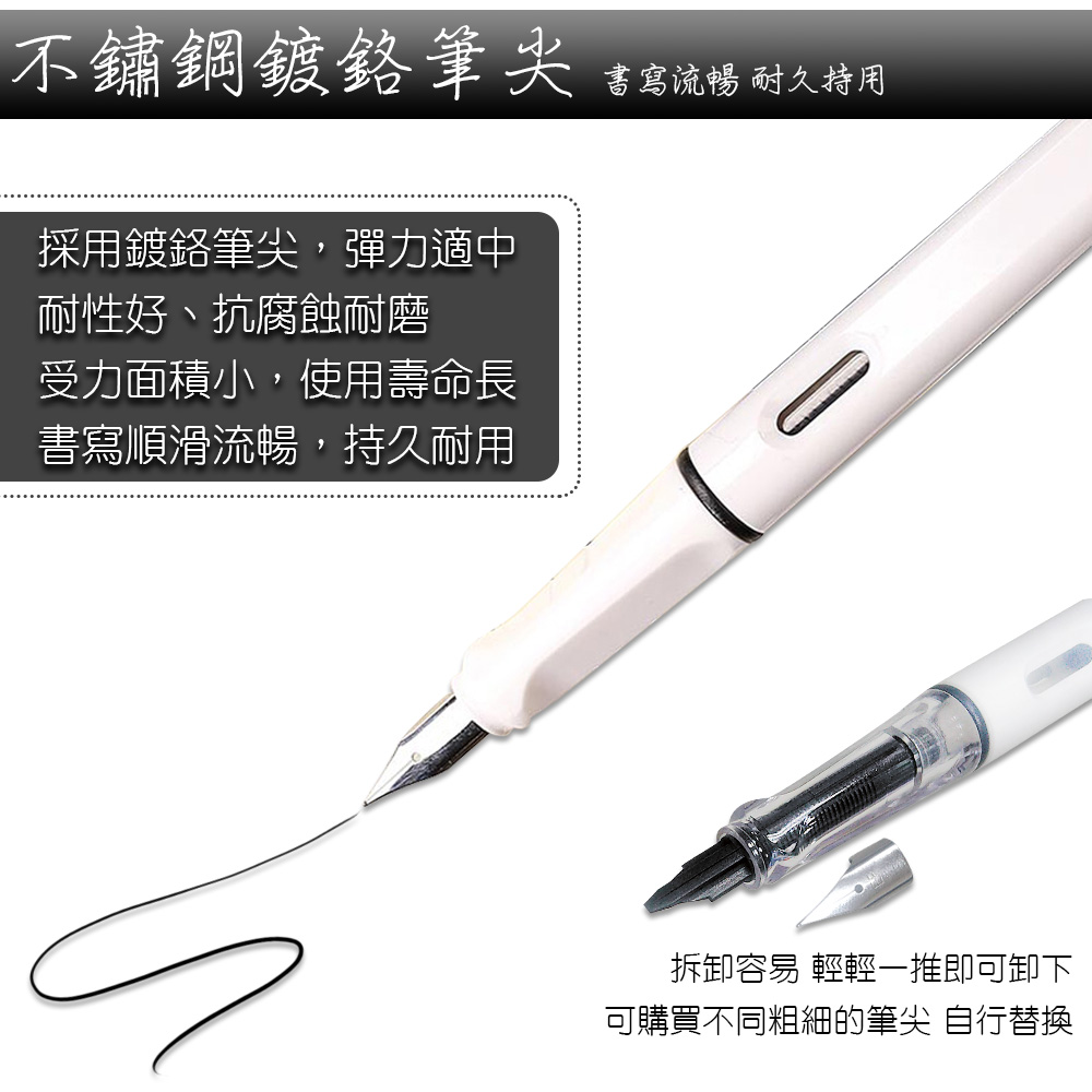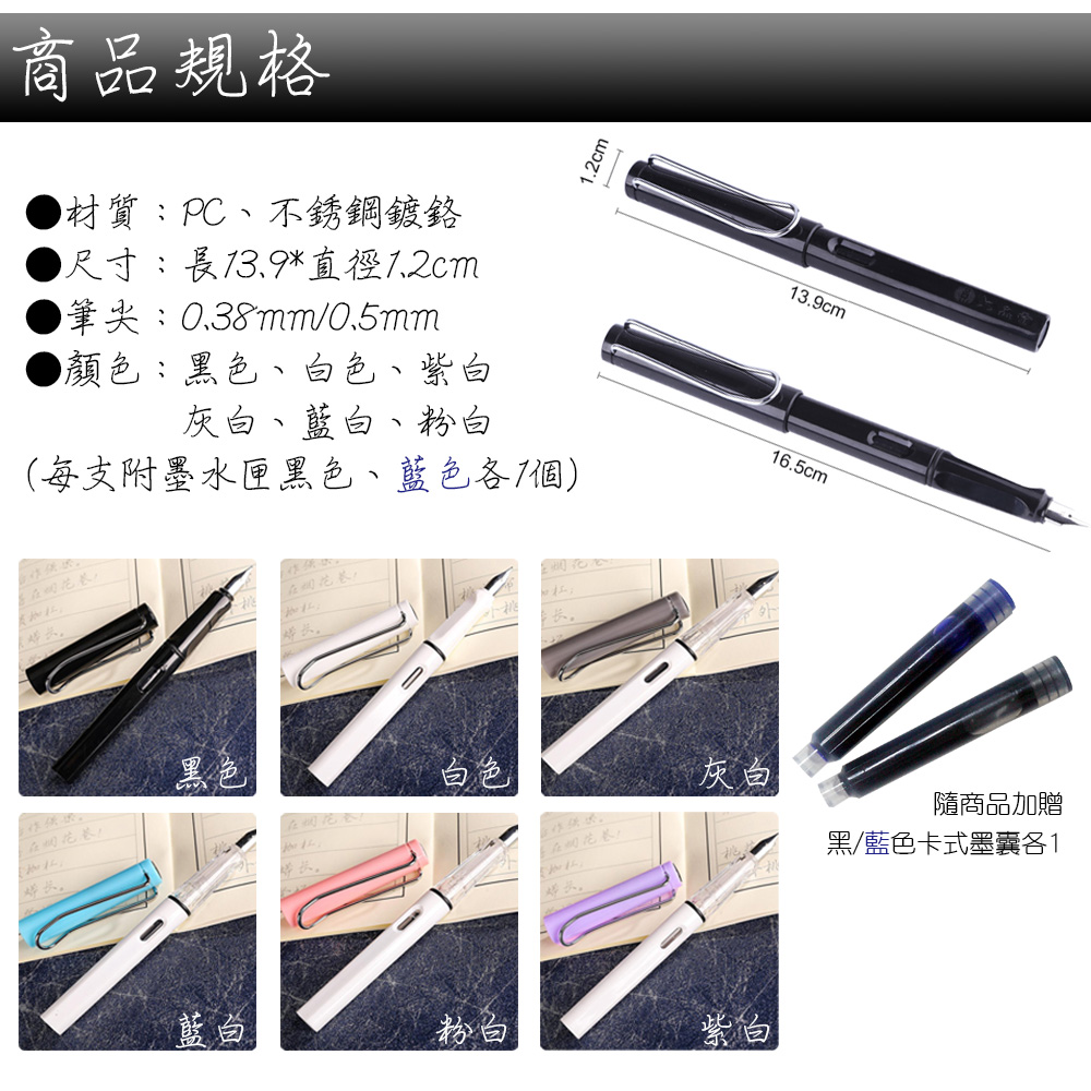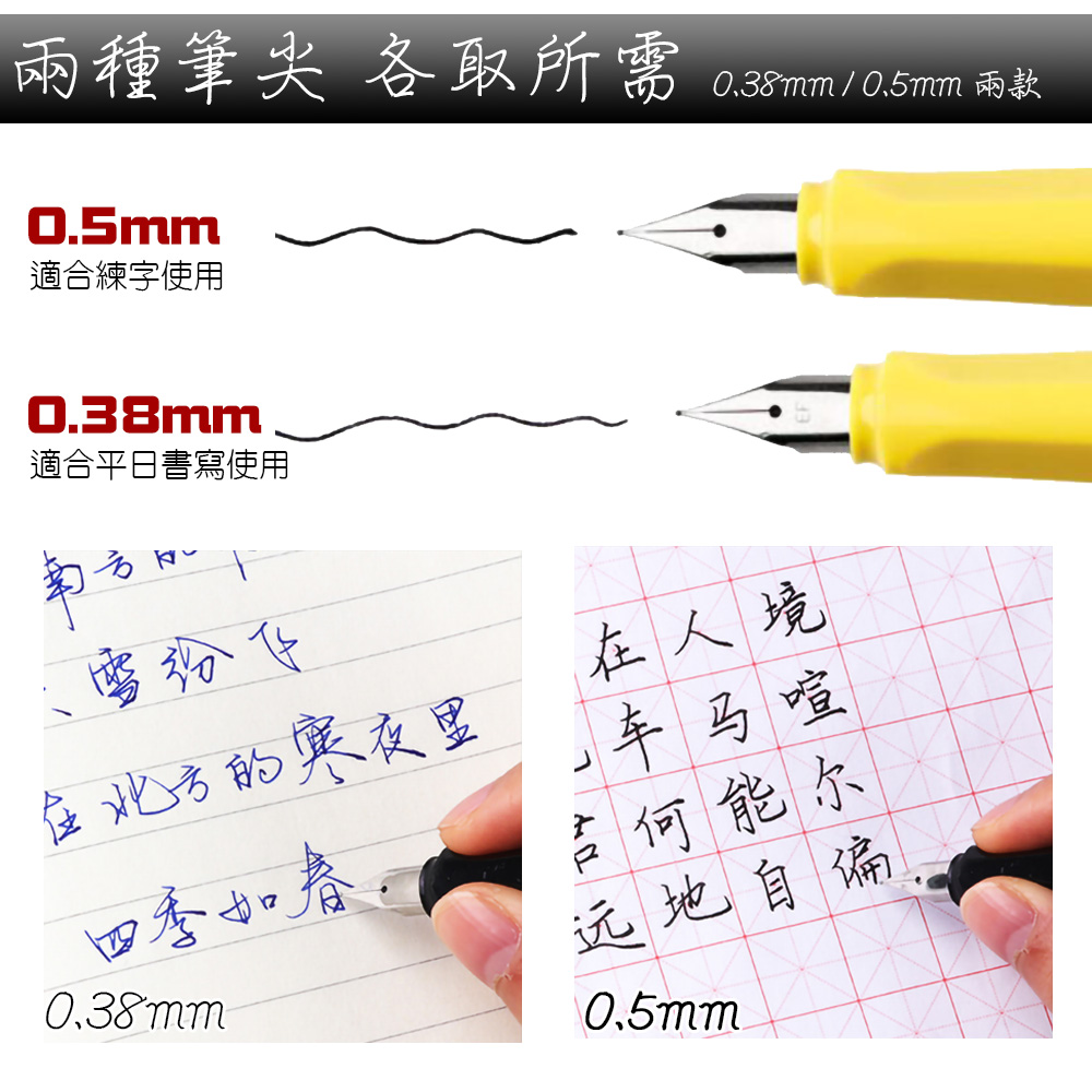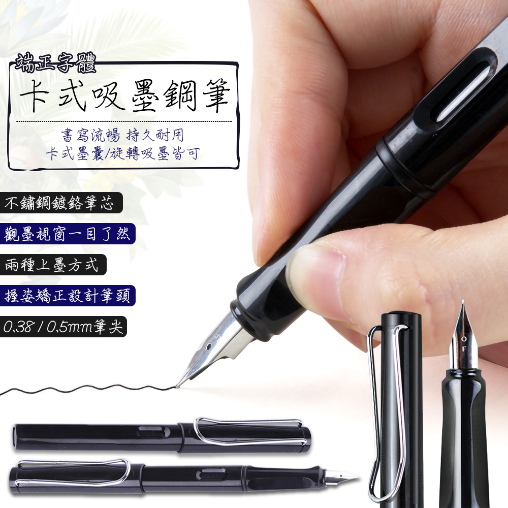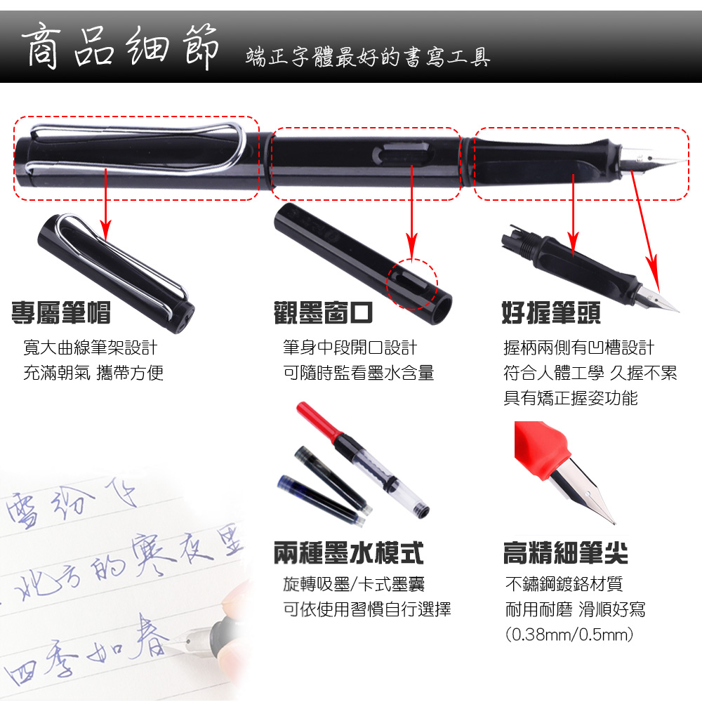 是端正字最好的工具,一一久了,字自然好看,本品卡式吸墨支,尖有0.38mm和0.5mm,特握姿正,墨窗一清二楚,卡式墨水匣或市面上卡式墨水管更皆可,色富,任你,你需要字不再尬!