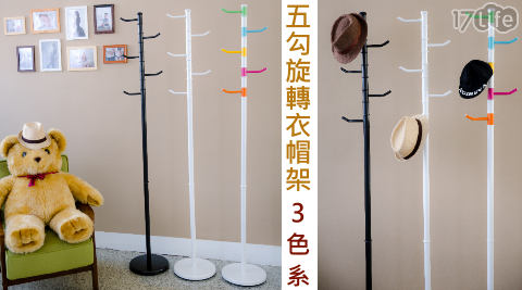 小角落收,尚的耐重五勾衣帽架, 您上衣物、包包俐落!厚底,重不倒! 放式造,360度旋死角,置物取物皆便利.