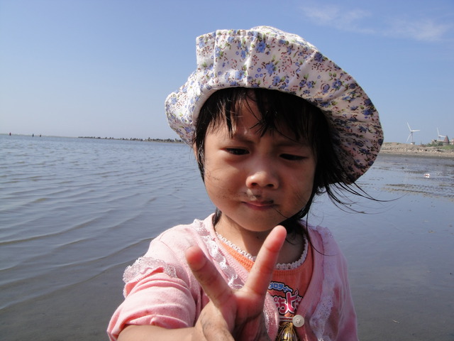 逛完了7-11(7-11也成了景了哈哈),再去那好呢?大中午的其最想的是回家睡午啦!不看爸爸好像很高昂的模,既然通霄海水浴去不成於是我去了大安海!不大中午2到的除了勤的挖蛤人,就只有我阿呆一家了吧!