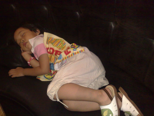 一上公就睡著的包子 奶奶不知道到底要不要打叫她爸爸到高站把小鬼接回去 果一到高站包子就醒了 竹北到台北都睡 一直奶奶到了有 她要找姑姑抱抱
