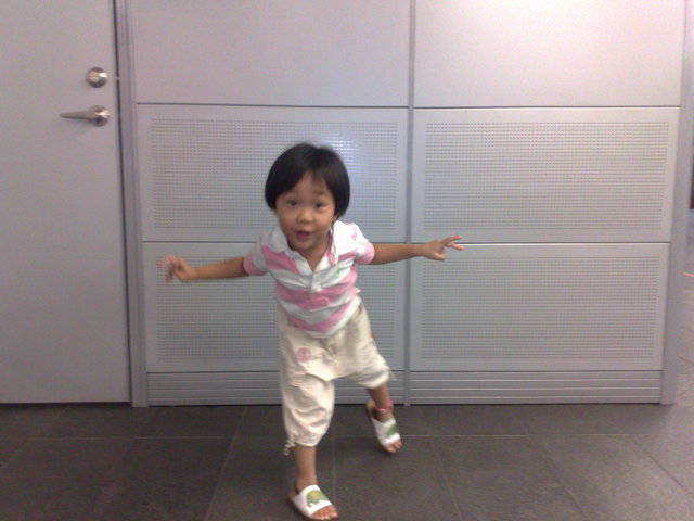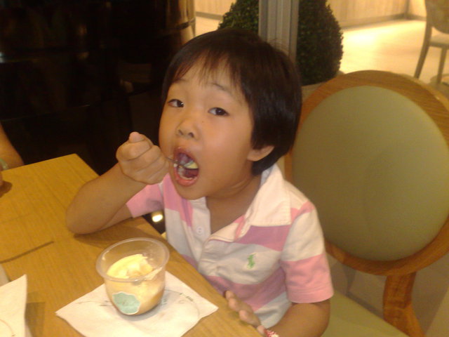 包子睡後不肯走走 但她也是要下午茶的 切切~ 所以姑姑又著奶奶陪她到地下去她的下午茶 吃著烤布丁 看看新境 和有趣的雕 小鬼精神了~~