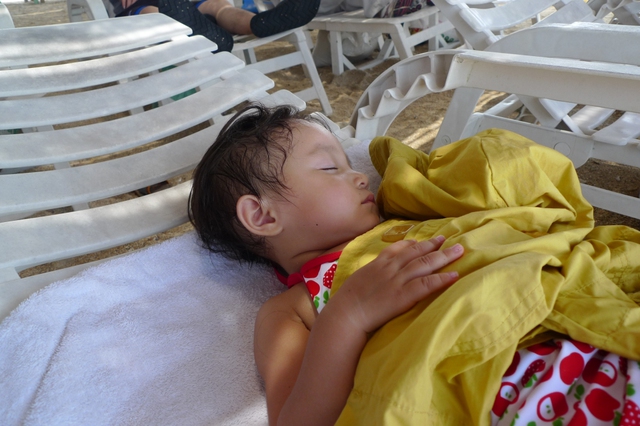 趁著水上活的空,一家大小到岸泡清的海水吧...
