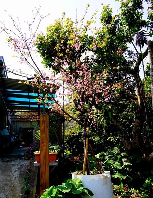 只好到附近庭咖啡欣得很漂亮的盆栽,有路旁售的梅...