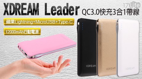 了【XDREAM】Leader QC3.0快充3合1 示行源(12000mAh)的多方比後,定在,CP值超高的