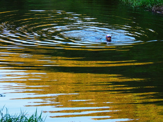 炎的日午後,屋前的山被斜染成金色倒印在溪河的美景,女趁我下水捕我拍的照片,捕不一定要。享受清美景有一番情趣