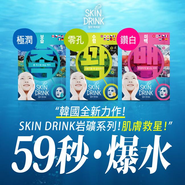 【SKIN DRINK】水效速感新生岩面膜20ml/片(肌零孔/肌/白亮肌)任 ,推,箱,CP值,,,便宜,惠,介,排行,精,特,周年,,限