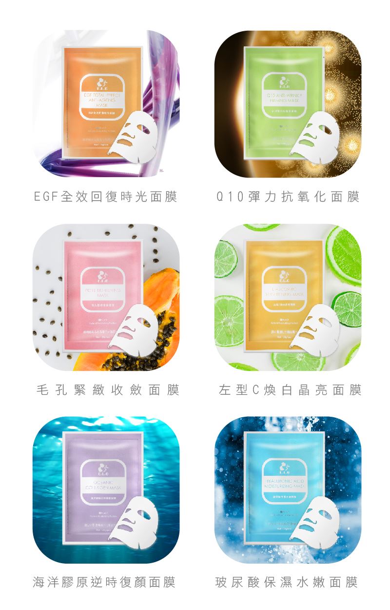 款式:EGF全效回光面膜/Q10力抗氧化面膜/毛孔收面膜/左型C白晶亮面膜/玻尿酸保水嫩面膜/海洋原逆面膜