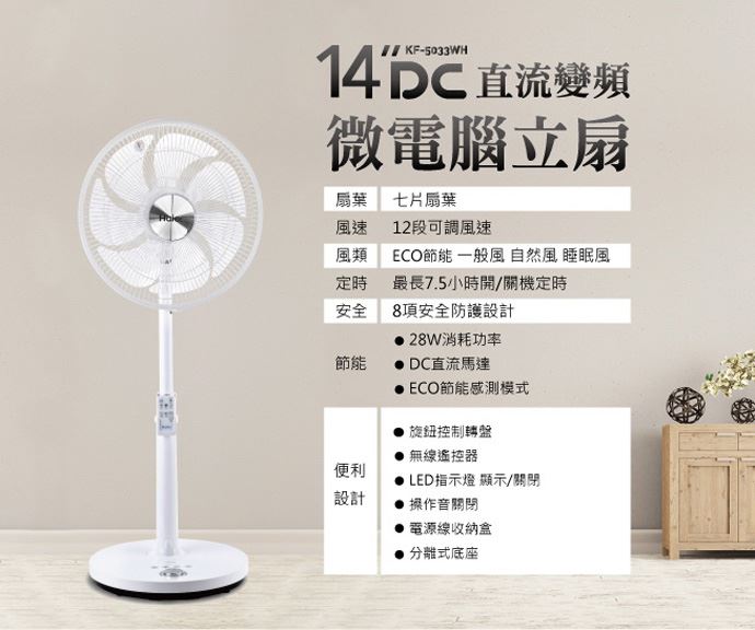 【Haier海】14DC直流微控扇 KF-5033WH ,推,箱,CP值,,,便宜,惠,介,排行,精,特,周年,,限