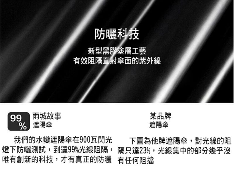 ●面附加黑, 零透光,有效防紫外,遮光率高百分之99!